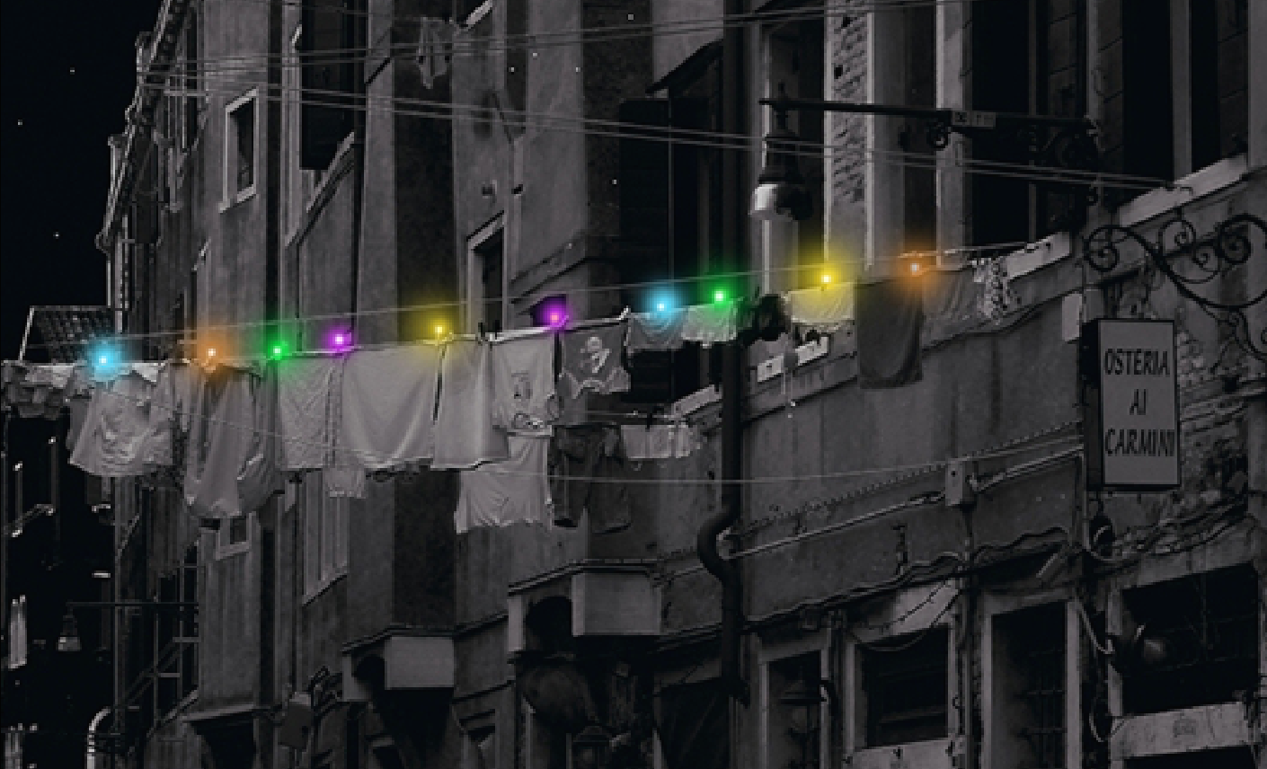 Pinzas de ropa solares iluminan las calles de la ciudad.