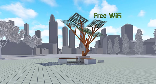 The eTree looks like a real tree, but uses solar power for WiFi, device chargers smartphones, electrical outlets and even night lights.