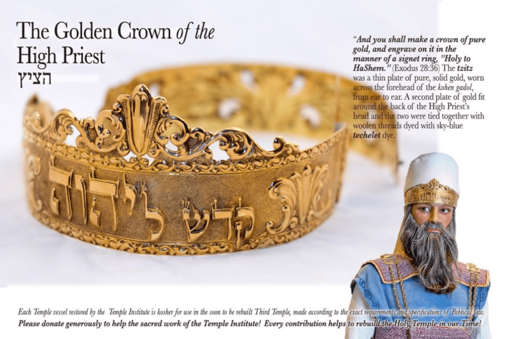36 And you shall make a showplate of pure gold, and you shall engrave upon it like the engraving of a seal: Holy to the Lord.”   לווְעָשִׂ֥יתָ צּיץ זָהָ֣ב טָה֑וֹר וּפִתַּחְתָּ֤ עָלָיו֙ פִּתּוּחֵ֣י חֹתָ֔ם קֹ֖דֶשׁ לַֽיהֹוָֽה: