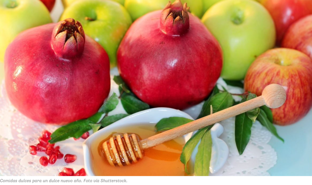 Las fiestas de Rosh Hashaná tradicionalmente incluyen pan jalá redondo (con uvas pasas) y manzanas bañadas en miel, así como otros alimentos que simbolizan nuestros deseos de un año dulce.