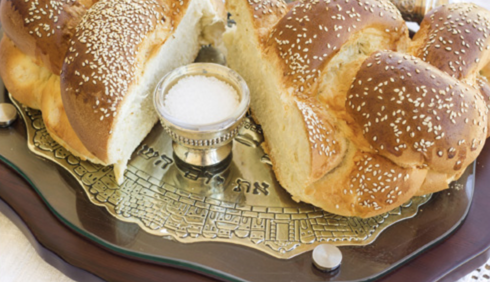 8.- Ha-Motzi: Dos jalot son puestas en una tabla o un plato, cubiertas con un paño decorativo en la mesa. Los dos panes conmemoran la doble porción de maná que caía del cielo cada viernes mientras los judíos estaban en el desierto. Después de la bendición, el conductor corta jalá para todos y la sirve. Le ponemos sal al pan porque es un preservante, simbolizando que esta comida no es simplemente una experiencia transitoria, sino que un momento que durará por la eternidad.