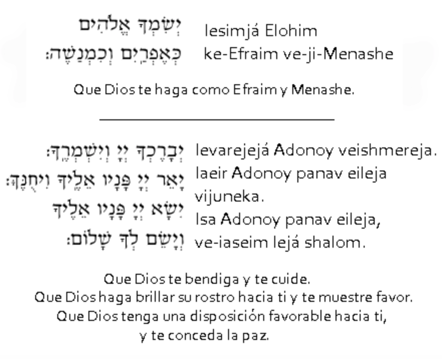 5.- La Bendición de los Hijos: Justo antes del Kidush, muchos padres bendicen a cada uno de sus hijos para que sigan con salud y fortaleza el camino de nuestros venerables ancestros.