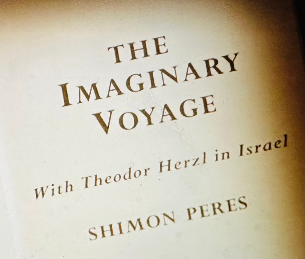 En 1998 Simon Peres escribio un breve libro titulado ” El Viaje Imaginario”, en el que imaginó a Theodoro Herzl, el fundador del Sionismo político, regresando a una tierra donde solo habia visitado una vez. Ahora el moderno estado de Israel.