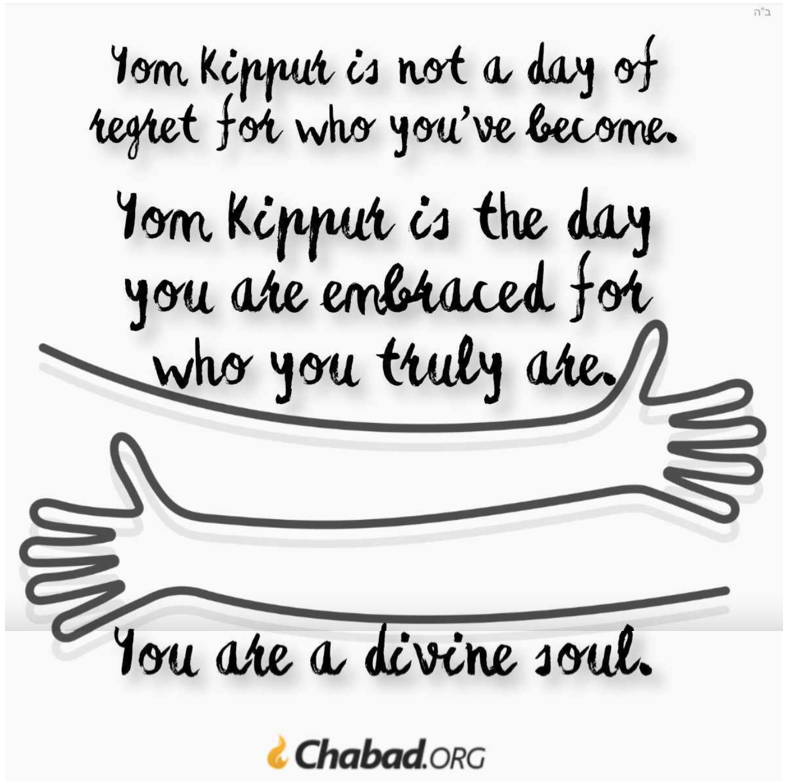Porque el arrepentimiento significa arrepentirse de quién te has convertido. Yom Kipur es un día en el que te abrazan por lo que realmente eres.