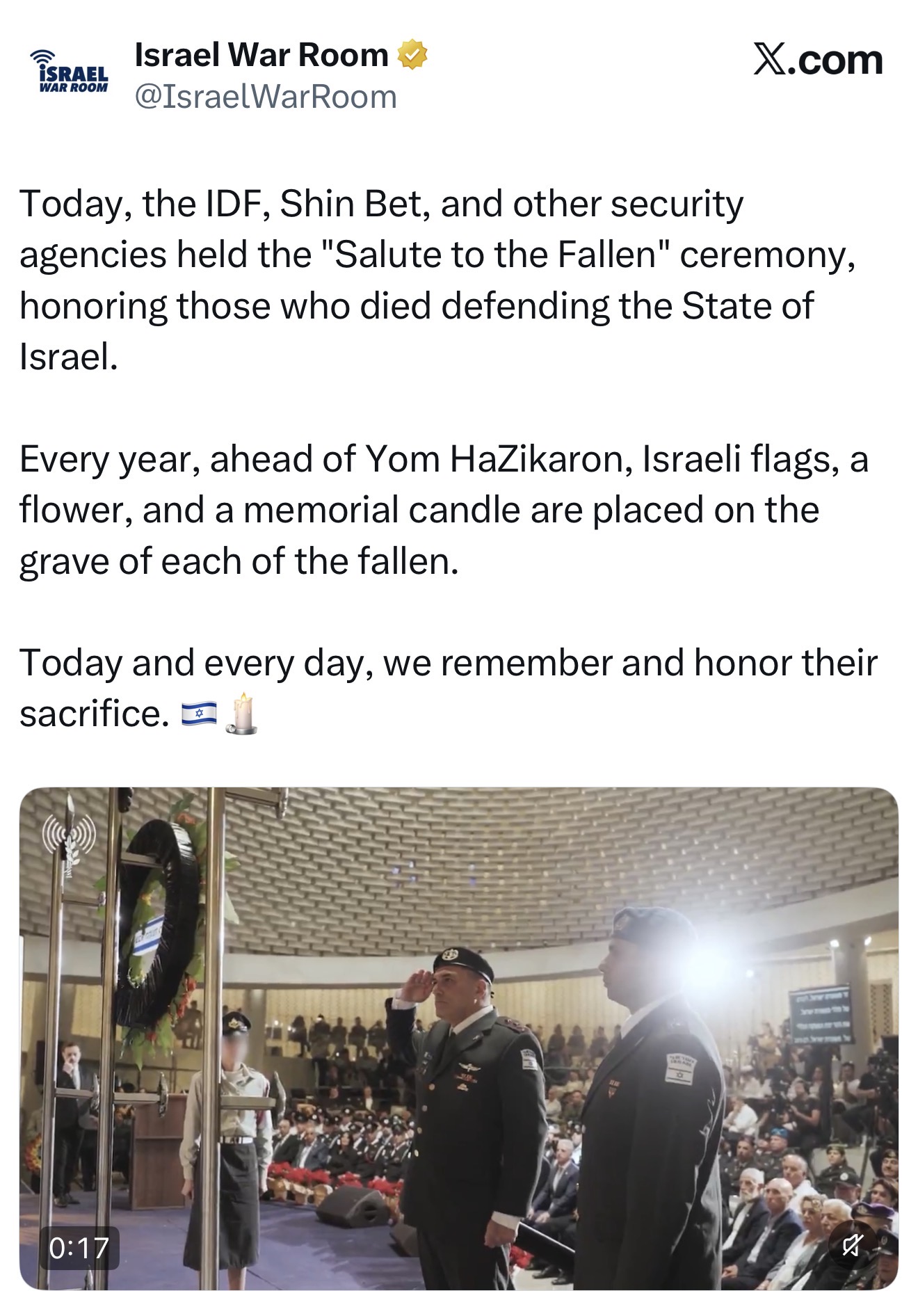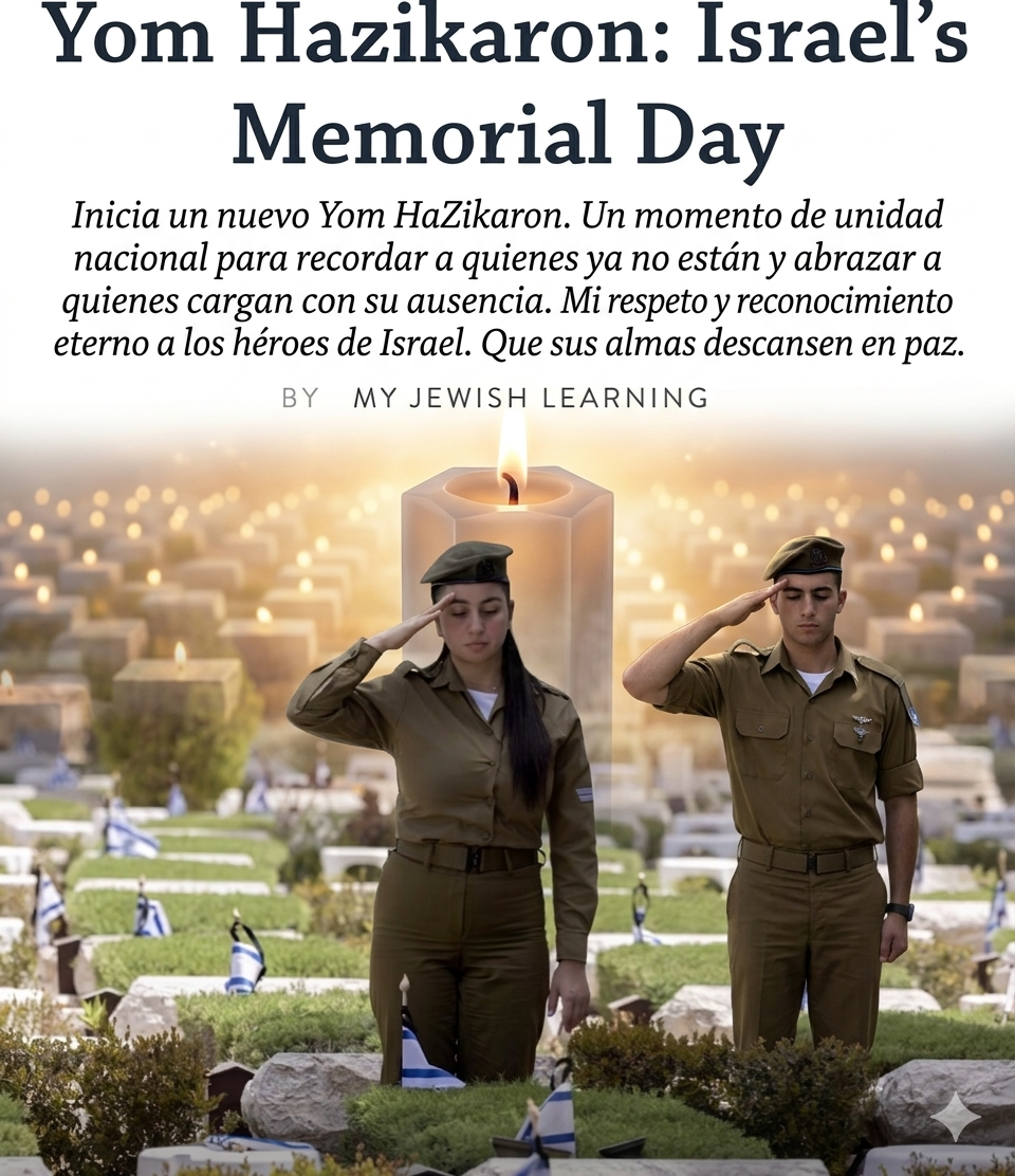 Inicia un nuevo Yom HaZikaron. Un momento de unidad nacional para recordar a quienes ya no están y abrazar a quienes cargan con su ausencia. Mi respeto y reconocimiento eterno a los héroes de Israel.
