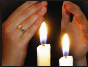 Al encender las velas de Shabat, la mujer dice la siguiente bendición: