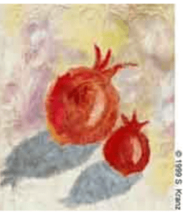 Tanto la manzana como la granada son representativas del pueblo judío. La Torá compara a Israel con una manzana (“Como una manzana entre los árboles del bosque, así es mi amado” – Cantar de los Cantares 2: 2) así como con una granada (“Tus labios son como un hilo de grana, y tu boca es hermosa, tu sien como un trozo de granada entre tus cabellos ”—ib. 4: 3). Pero mientras que la manzana representa a Israel en un estado virtuoso, la granada se refiere a los “huecos” o “los vacíos entre ustedes”. Según la interpretación del Talmud, el verso “tu templo es como un trozo de granada” viene a decir que “incluso los vacíos entre ustedes están llenos de buenas obras como una granada [está llena de semillas]”. (Rakah, la palabra hebrea que se usa en el versículo para “templo”, está relacionada con la palabra reik, “vacío”. Por lo tanto, “tu templo” se traduce homiléticamente “los vacíos entre vosotros”).