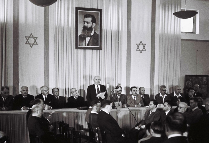 En 1947, las Naciones Unidas votaron la partición. Nuevamente, los judíos aceptaron, los árabes la negaron. David Ben Gurion reiteró el llamado a la paz como parte central de la Declaración de Independencia de Israel en mayo de 1948. Los vecinos de Israel – Egipto, Jordania, Siria, el Líbano e Irak – respondieron atacando en todos los frentes.