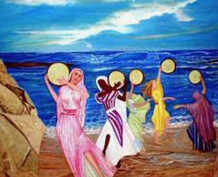 Y Miriam la profetisa, la hermana de Aarón, tomó el pandero en su mano; y todas las mujeres salieron tras ella con panderetas y bailes circulares. Y Miriam les respondió: “Canten al Señor, porque él ha triunfado gloriosamente; el caballo y su jinete lo arrojó al mar “.
